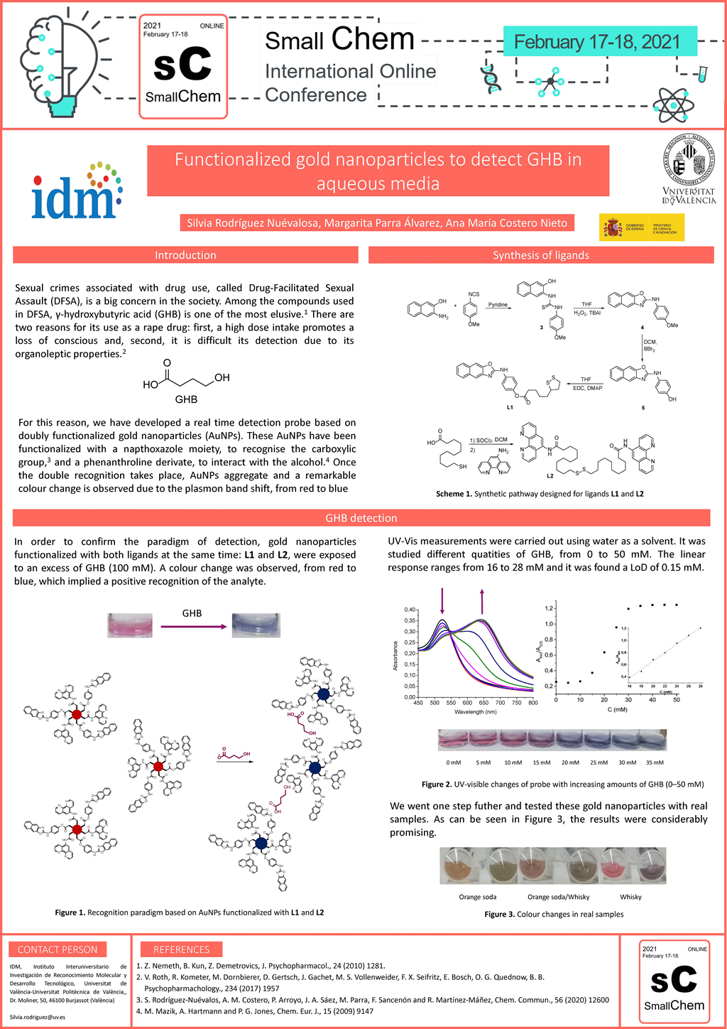 Functionalized gold nanoparticles to detect GHB in aqueous media |